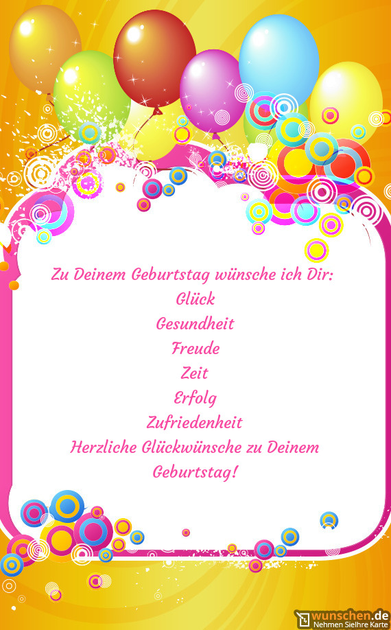 Zu Deinem Geburtstag wünsche ich Dir: Glück